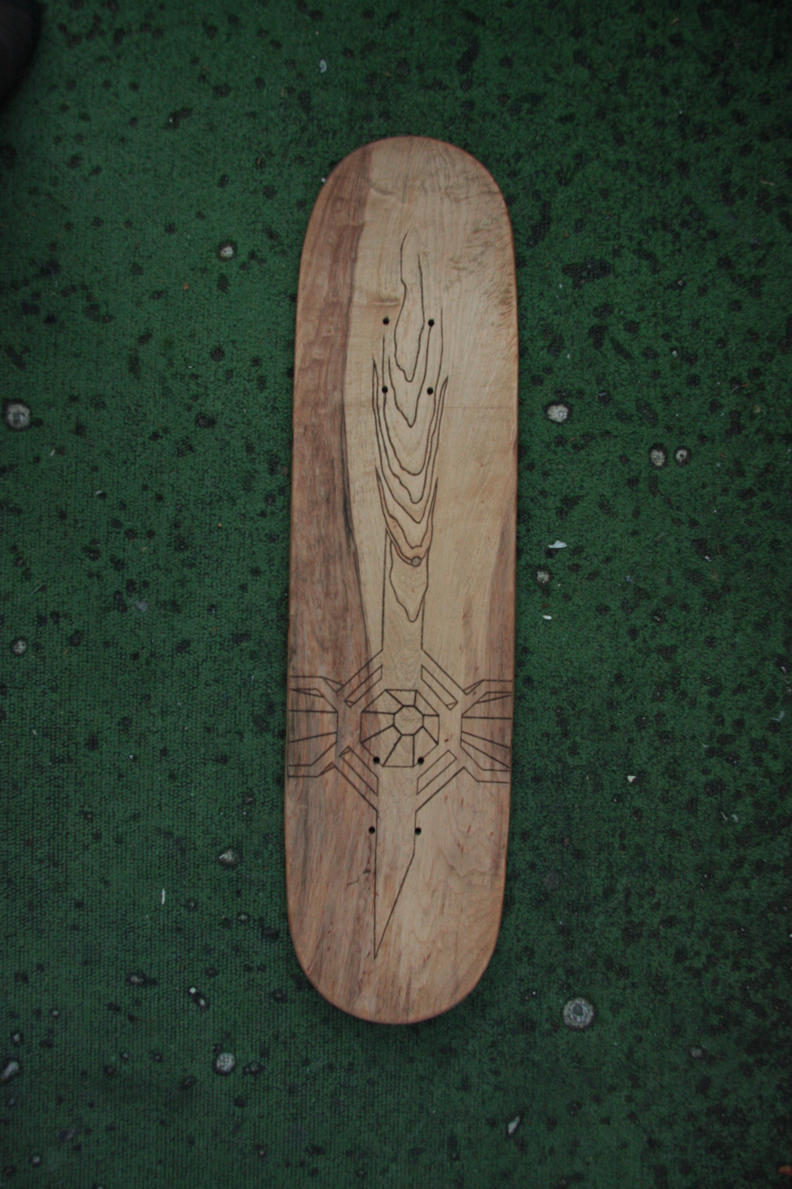 Some travelers leave unexpected items behind in hostels when they move on. The opportunity for other travelers to work on them when they get bored. A plane wooden skateboard deck carved in with an image and given to just another traveler as he was moving on, to take some memories with him.